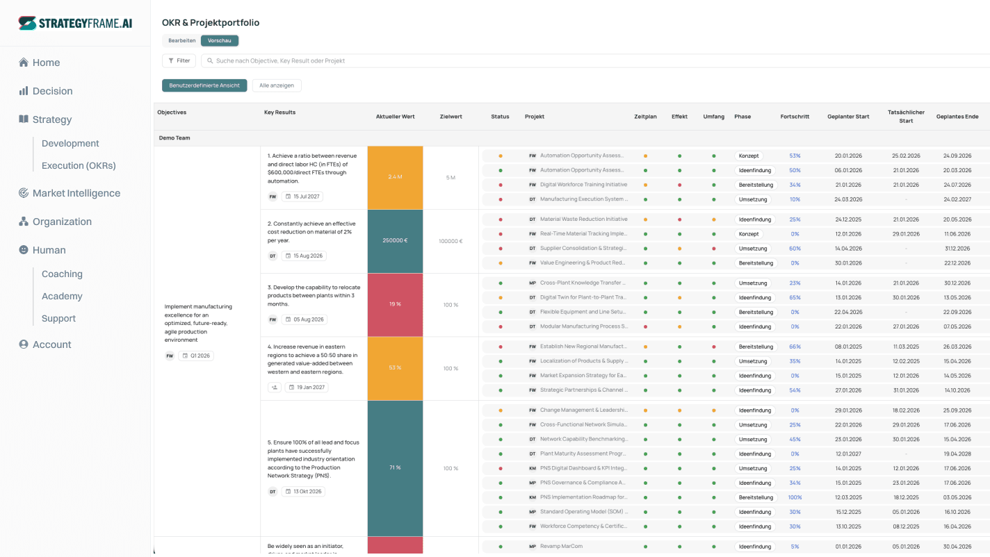 Dutzende Projekte laufen parallel. Deine Teams arbeiten mit vollem Einsatz. Aber welche dieser Initiativen tatsächlich auf deine strategischen Ziele einzahlen, kannst du nicht sagen. Ressourcen fließen, aber du weißt nicht wohin.